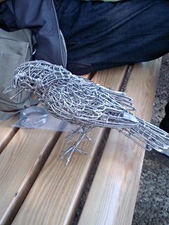 途中、人が座っているベンチに白い鳥がいて、「やけに人に慣れてるなぁ」とおもったら、その座っていた方が作られたそうで、全部針金とワイヤーで、しかもハンダ付け無しという作品。